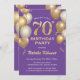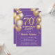 Convites 70 Birthday Roxo e Dourado Balões Leves