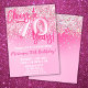 Saúde para 70 anos! Convite de aniversário rosa-rosa, 70, convites para 70 anos, com moderno roteiro, escrevendo e balões de folha divertida.