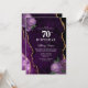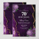 O Convite de aniversário de 70 de Agate Floral Dourado Elegante roxo apresenta lindas matizes violetas roxas de gemstone e delicados rosas roxos com alças de ouro.