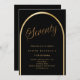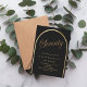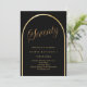 Um convite elegante de 70. Um fundo preto com um arco de ouro na frente.