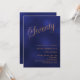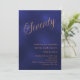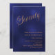 Um convite moderno e na moda para uma festa de aniversário 70. Um fundo azul marinho, incolor, e a palavra Setenta escrita com letras elegantes e grandes em dourado falso. Personalize e adicione um nome e detalhes da parte.