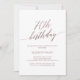 Este elegante convite de 70 de caligrafia em rosa é perfeito para uma festa de aniversário simples. A design cor-de-rosa-pincelada apresenta uma carta minimalista decorada com tipografia da folha de ouro rosa-falso romântica e caprichosa. Nota: Este design não apresenta folha de ouro rosa real. É um gráfico de alta qualidade feito para se parecer com folha de ouro rosa.