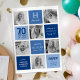 Convites de festas de aniversários de 70 contemporâneos com uma colagem de fotos moderna, quadrados azuis de tendências e um modelo de texto na moda para você personalizar com suas próprias informações de celebração.