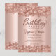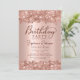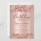 Folha metálica de ouro elegante moderno e rosa de ouro brilhante e convites para 70 anos. Esta design de placa feminina feminina adulta apresenta um roteiro de caligrafia manuscrito na moda, cor-de-rosa pincelada, farelo de folha metálica escovada com borda brilhante rosa dourada. Fácil de personalizar, perfeito para qualquer idade.