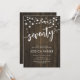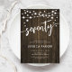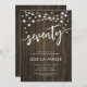 Convite de aniversário 70. Design russo com padrão de madeira marrom-escura. Cartão de convite clássico com luzes de fada e fonte de script. Perfeito para uma comemoração de na moda 70 dias. Personalize com seus próprios detalhes. Pode ser personalizado para qualquer idade! Impressos convites Zazzle ou modelo de impressão digital instantânea para download.
