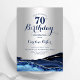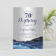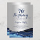 convite de aniversário 70 azul marinho e agate prateado. Elegante design moderno com cor azul-real de água agate marble geode fundo, faux glitter siler e letra de script de tipografia. Trendy convida o cartão perfeito para uma comemoração de dia das mulheres na moda. Impressos convites Zazzle ou modelo de impressão digital instantânea para download.