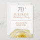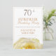 70 moderno convite de festas de surpresa para ela. Convite de aniversário com uma linda flor de rosa amarela. O fundo é branco. O texto é facilmente personalizável - personalize-o com seu nome, idade, data, local e RSVP. Uma festa surpresa para uma mulher que comemora seu 70º aniversário. Convide para a festa de aniversário surpresa.
