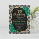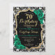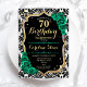 Convite de aniversário 70. Elegante design verde-esmeralda floral com ouro e rosas brilhantes falsos. Apresenta cor damasco preta e branca e fonte de script. Perfeito para uma comemoração de dia das mulheres na moda. Pode ser personalizado para qualquer idade! Impressos convites Zazzle ou modelo de impressão digital instantânea para download.