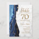 convite de aniversário marinho azul-agate, 70 surpresa de ouro e mármore. Elegante design moderno com cor azul-real de água agate marble geode fundo, fonte falsa de ouro brilhante e script de tipografia. Trendy convida o cartão perfeito para uma comemoração de dia das mulheres na moda. Impressos convites Zazzle ou modelo de impressão digital instantânea para download.