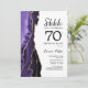 Convite de aniversário de 70 surpresas roxo, branco e ouro agata. Elegante design moderno com aquarela agate marble geode background, faux glitter gold e typografia script font. Trendy convida o cartão perfeito para uma comemoração de dia das mulheres na moda. Impressos convites Zazzle ou modelo de impressão digital instantânea para download.