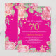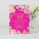 Convite de Aniversário para 70 de Surpresa Floral para Mulheres. Flor Botânica De Aquarela Dourada Glitter. Flores Florais De Pêonias Rosa. Aniversário Adulto. Fundo Rosa Quente. Para mais personalização, clique no botão "Personalizar" e use nossa ferramenta de design para modificar este modelo.
