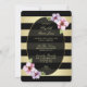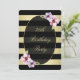 Aniversário do 70| Douradas Listras Pretas Horizontais. Convites personalizados, personalizados, personalizados, personalizados, românticos, de 70, para mulheres. Um convite lindo e moderno com o plano de fundo das faixas de gradiente preto e ouro contemporâneo, preto e dourado, flores bonito de madeiras e de aquarelas lilases e texto elegante em fonte cursiva de rico. Clássico, giro, chique, feminina, feminina, ornamentado, convites duplos. Todo o texto é totalmente personalizável / personalizável para atender às suas necessidades - muitas fontes e cores para escolher. Esses convites personalizados sofisticados, exclusivos e originais, personalizados, são impressos em ambos os lados / têm impressão frente e verso. NOTE: Todos os convites Zazzle são imagens impressas em formato plano - e não folhas de ouro reais.