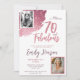 70 e Fabuloso convite de aniversário para 70 da Surpresa Foto Rosa 2. Jogue uma incrível celebração surpresa com este convite de aniversário "70 e Fabuloso" rosa e brilhante. Apresentando um traçado de pincel cintilante e espaço para duas fotos pessoais, este design elegante é perfeito para honrar um fabuloso aniversário de marco feminino. Totalmente personalizável para incluir os detalhes do seu partido e um toque pessoal que os convidados adorarão.