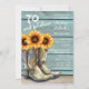 70 E Fabuloso concurso russo de girassol ocidental apresenta um design rústico de botas de cowgirl cheias de girassóis de aquarela. Personalizado editando o texto nas caixas de texto dos seus 70 e fabulosos convites de festas de aniversários 70. Criado pelo Evco Studio www.zazzle.com/store/evcostudio