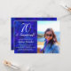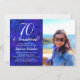 70 anos e Convite de aniversário Sensacional Real de Foto Personaliza este elegante convite de aniversário azul real com o nome e a foto da pessoa que celebra um dia muito especial em sua vida. Um aniversário de 70 é um marco especial para celebrar. Marque a ocasião criando uma festa e enviando convites para todas as pessoas especiais em sua vida. Compre nossa loja de presentes que você pode personalizar com este mesmo design elegante em canecas de presente de aniversário, etiquetas de vinho e cartões de aniversário.