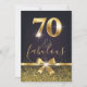 Convite preto e Dourado à moda elegante do aniversário do 70. Características de design do brilho do ouro e do arco sparkly do ouro na folha 70 da parte dianteira assim como de ouro. Adicione detalhes do partido na parte traseira.