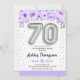 convite de aniversário 70. Design elegante em prata brilhante com sotaque floral. Convide cartão com balões prateados número 70, fonte de script com confetti. Púrpura, lavanda e branco. Perfeito para uma comemoração de na moda 70 dias. Envie-me uma mensagem se precisar de idade personalizada.