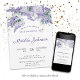 Convites 70 Floral Aniversário Purple Watercolor Elegante