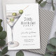 Um convite de aniversário sofisticado com um tema de coquetel de na moda chic com um martini com 3 azeitonas. Aqui mostrada como uma festa de aniversário 70, você pode personalizar o modelo de texto para qualquer idade. Todo o texto pode ser personalizado para o seu partido. Este convite está disponível como download digital impresso e sem papel para envio eletrônico aos seus convidados.