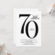Convide seus amigos e entes queridos com este convite de aniversário 70 branco e preto moderno. A área de texto personalizável neste modelo de convite permite que você inclua facilmente todos os detalhes necessários para sua celebração especial de aniversário, incluindo as informações de data, hora, local e RSVP. Uma variedade de tipos de papel e estilos de canto estão disponíveis para seus convites exclusivos, juntamente com a opção de download se você preferir um formato digital.