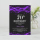 Convide seus amigos e entes queridos para o seu aniversário de 70 com este convite de aniversário preto e roxo moderno. A área de texto personalizável neste modelo de convite permite que você inclua facilmente todos os detalhes necessários para sua celebração especial de aniversário, incluindo as informações de data, hora, local e RSVP. Uma variedade de tipos de papel e estilos de canto estão disponíveis para seus convites exclusivos, juntamente com a opção de download se você preferir um formato digital.