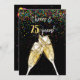 Brinde de champanhe em preto com confete colorido para 75º convite para festas de aniversário.