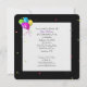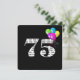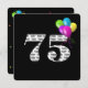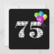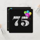 Texto preto e branco em negrito sobre fundo preto com balões coloridos para o 75º convite para festas de aniversário.