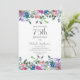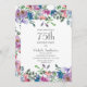 Floral de cor d'água roxa, azul e cor-de-rosa, no estilo do livro, no convite de aniversário 75º branco para mulheres. Fontes, texto e texto são todos personalizáveis.