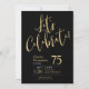 Este fabuloso convite de aniversário de 75 negros que diz "Celebrado de Vamos!" numa letra moderna em ouro seria perfeito para celebrar o homem no 75º aniversário da sua vida. Este convite é moderno, na moda, moderno e contemporâneo. Para ver seus convites personalizados, selecione "Personalizar este modelo" e digite suas informações. É super fácil!