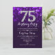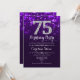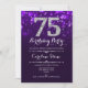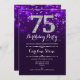 75º Convite de Aniversário. Elegante design branco roxo com prata brilhante. Aniversário adulto. Apresenta diamantes e fontes de script. Convidado para homens ou mulheres no dia. Perfeito para uma festa de aniversário na moda. Envie-me uma mensagem se precisar de mais personalização.