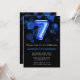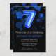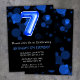 7 balões de aniversário crianças convite de aniversário de 7 azul para um garoto de 7 anos com moderno roteiro escrevendo e balões de folhas azuis divertidas.