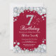 Convite de aniversário de 7. Burgundy Red e Silver Rhinestone Diamond. Convidado Elegante Birthday Bash. Aniversário Adulto. Mulheres Aniversário. Homens Aniversário. Para mais personalização, clique no botão "Personalizar" e use nossa ferramenta de design para modificar este modelo.