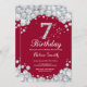 Convites 7 Birthday Burgundy Red e Silver Diamond