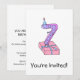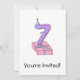 Convites 7 Birthday Pink e Roxo Cartoon.