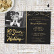 Convite de aniversário preto e 80 de ouro com a fotografia de honra de aniversário (uma foto atual ou da juventude) anunciando que estão 80 ANOS NO FAZER! A design incorpora o seu ano de nascimento no título. ASSISTÊNCIA: Para obter ajuda com a modificação ou personalização do design, alteração de cor, redimensionamento, transferência do design para outro produto ou, se você quiser coordenar itens, entre em contato com o designer ANTES DE PEDIR através da guia MENSAGEM de bate-papo Zazzle abaixo ou envie um email para makeitaboutyoustore@gmail.com.