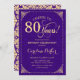 80 Aniversário Convite Elegante, roxo vintage e design de ouro falso com cor damasco. Apresenta a fonte do script. Saúde para 80 anos! Pode ser personalizado em qualquer idade! Envie-me uma mensagem se precisar de mais personalização.