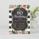 80 Aniversário Convite para mulheres. Convidar Festa de aniversário preto e Dourado. Dourada Glitter. Flor Floral Cor de Água Rosa. Black and White Stripes. Chalkboard. Digital Imprimível. Para mais personalização, clique no botão "Personalizar" e use nossa ferramenta de design para modificar este modelo.