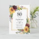 Este convite para o aniversário do 80 de girassóis é perfeito para a sua festa. É uma adorável cor d'água, girassóis e rosas burros e flores silvestres espertas em uma dupla camada de ouro misturada lindamente com o tipo limpo, faça-o atordoante, moderno, mas clássico! Está coordenando a lavagem de cor d'água de burgundy e adiciona um toque extra. São perfeitos para celebrar sua esposa, mãe, tia, amiga, avó. É muito fácil fazer esses convites selecionando Personalizar este modelo e digitando em suas informações. Num instante você pode ver como seus convites serão lindos!