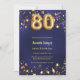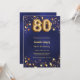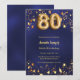 Um convite moderno e na moda para um 80 aniversário. Um fundo azul marinho, decorado com estrelas ouros. A cor azul é irregular. Personalize e adicione seu nome e detalhes da festa.