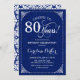 Convite de aniversário de 80. Marinho elegante azul e design branco com cor damasco. Apresenta a fonte do script. Saúde para 80 anos! Pode ser personalizado em qualquer idade! Envie-me uma mensagem se precisar de mais personalização.