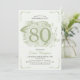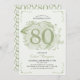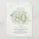 convite de aniversário 80 com número decorativo 80. Este design sutil e elegante apresenta uma lavagem a aquarela com flores silvestres delicadas, folhagem e um quadro delicado em tons de verde. Perfeito para macho ou fêmea comemorando um 80.