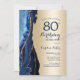 convite de aniversário 80 azul e dourado agate. Elegante design moderno com cor azul-real de água agate marble geode fundo, fonte falsa de ouro brilhante e script de tipografia. Trendy convida o cartão perfeito para uma comemoração de dia das mulheres na moda. Impressos convites Zazzle ou modelo de impressão digital instantânea para download.