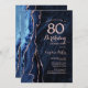 convite de aniversário marinho azul e rosa dourado 80. Elegante design moderno com cor azul-real de água agate marble geode background, faux glitter rosa gold e typografia script font. Trendy convida o cartão perfeito para uma comemoração de dia das mulheres na moda. Impressos convites Zazzle ou modelo de impressão digital instantânea para download.