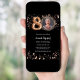 Um convite para fotos moderno e na moda para uma festa de aniversário 80. Um fundo preto clássico, decorado com estrelas douradas rosa. Personalize e adicione os detalhes da sua festa.