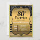 80 Aniversário elegante convite de festas preto e ouro surpresa com design de escudo. Impressão de ouro e diamantes falsos. Um design e sentimento maravilhosos para ele ou para ela. Nome facilmente editado e detalhes relevantes usando o modelo fornecido.