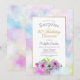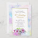 Um convite de festas de aniversário de 80 surpresa floral azul e cor-de-rosa com um bordo de janta dourado e pintado a água.