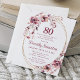 Burgundy suave e flores silvestres cor-de-rosa criam um belo design floral neste elegante convite de 80. As flores cor-de-rosa estão aninhadas em folhas neutras macios. Eles decoram uma moldura de ouro com vários fios. 80 está escrito em uma grande cor vermelha entorpecida. O texto é uma fonte tradicional vertical. O nome do celebrante de aniversário está escrito em um roteiro clássico. A parte de trás do convite é branca com um galinheiro de flor silvestre. Este convite faz parte da coleção Burgundy e Dusty Blush. Ele contém modelos para permitir que você crie facilmente um convite de aniversário 80 único e bonito. Também contém modelos para criar suprimentos e sinais de festas.