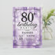 Convite de aniversário de 80 com luzes de cordas roxas com fundo brilhante roxo. Aniversário Roxo. Aniversário Adulto. Homens ou Mulheres no Dia Convidam. 13 15 16º 18º 20 21rua 30 40º 50º 60º 80 de 70 100º, qualquer idade. Para mais personalização, clique no botão "Personalizar" e use nossa ferramenta de design para modificar este modelo.