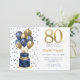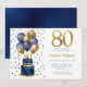 Este fabuloso convite para o marinho de aniversário de 80, azul bolo, com 2 camadas de marinho azul e ouro, com balões de marinho azul e ouro, e o número 80 em ouro seria perfeito para celebrar seu marido, irmão, pai, amigo, tio, avô, avô excelente. É tradicional e clássico enquanto é fresco, moderno e contemporâneo. A parte de trás é uma folha azul-marinho coordenadora.