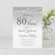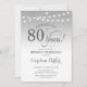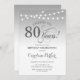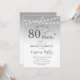 80 Aniversário Convite Elegante design branco prateado com luzes de cordas de fada e fonte de script. Saúde para 80 anos! Pode ser personalizado em qualquer idade! Envie-me uma mensagem se precisar de mais personalização.